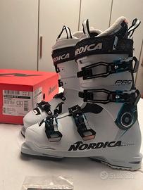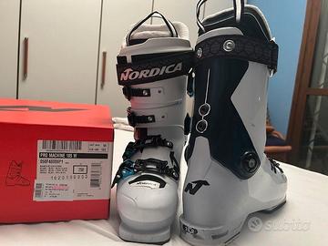 Vendo scarponi sci donna della Nordica, modello Pro Machine 105 W, taglia 25 che corrisponde a una taglia 40, io normalmente indosso la 39. Usati pochissimo. Praticamente nuovi. Corredati della loro scatola originale
