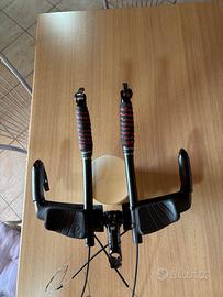 Prolunghe da crono in carbonio. Usate 2 volte. Perfettamente funzionanti come nuove. Complete di cavi e attacco manubrio Ritchey da 90mm. Per cambio 11 velocità posteriore e deragliatore centrale. Vendo per inutilizzo