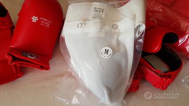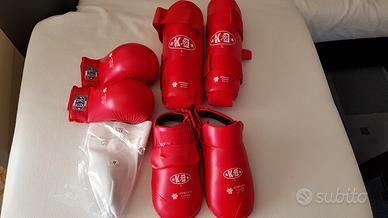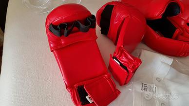 Protezioni arti martiali nuove. Approvate FIJLKAM. Parastinchi e parapiedi misura L, guanti e conchiglia misura M e paradenti.