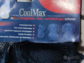 protezioni Fila (mani, gomiti e ginocchia) per persona di 50 kg di colore grigio e nero.