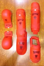 Protezioni karate ITAKI rosse, nuove, mai usate, conservate in scatola originale.