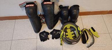 Protezioni DAINESE per ginocchia, spalle, casco, per ragazzo under 18, per MTB. Consigliato per chi vuole sperimentare e divertirsi in MTB in sicurezza oppure anche per snowboard.