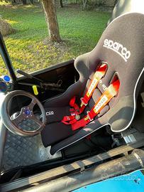 Monta sospensioni nuove all'anteriore, volante sgancio rapido, cinture sabelt 6 punti (con omologazione scaduta), sedile a guscio Sparco (con omologazione scaduta) con possibilità di regolazione sia della posizione che dell'inclinazione, serbatoio da pista, luci autorizzate per pista.