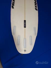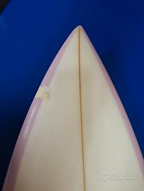 surfboard Pukas the Rush 5’10 x 19.75 x 2.40 x 29.51L scassi per pinne Futures . in buone condizioni . piccola riparazione vicino alla punta .