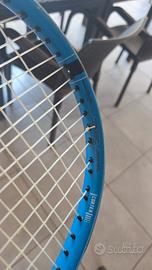 racchetta usata molto poco manico due ma con doppio grip quasi tre...incordata da poco