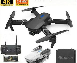 Drone con telecamera HD 4K ed App per guida tramite smartphone. Dotato di luci a led per visione notturna, radiocomando con sistema aggancio smartphone, kit di protezione dagli urti, custodia protettiva e pale di ricambio.