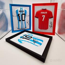 Raffigura la maglia di Messi dell'Argentina con autografo inciso