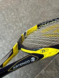 Vendo racchette tennis usata solo pochi mesi,é un pò più pesante di altre marche , é stata usata da mio figlio dopo la babolat 25 prima di passare alla 26. Permette di spingere un po’ di più delle altre racchette di pari misura.