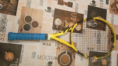 Vendesi racchetta babolat pure aero lite peso 270 grammi non incordata. Tenuta bene perché era la terza racchetta di un Under 13 agonista. Accordata con monofilamento e con grip praticamente nuovo. Venduta per passaggio a racchetta di peso 300 grammi. Manico L2.