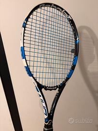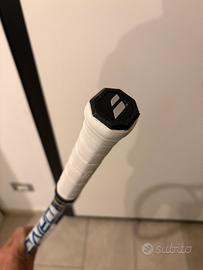 Raccchetta di qualche anno fa, in ottime condizini, incordata tre mesi fa, una minima scheggiatura sul piatto di tre millimetri. Leggera e caria, manico L2.