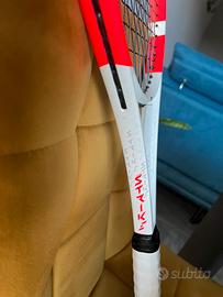 RACCHETTA BABOLAT PURE STRIKE 98 16/19 (305 GR) Manico L2 Testa della racchetta: 98 Peso: 305 gr Profilo:21-23-21 Bilanciamento:320 Lunghezza:27 Schema corde:16x19 Corda montataRPM Rough nera Rcchetta in ottimo stato, nuova incordatura eseguita il 2 aprile 2026. Vendo per passaggio ad altro modello.