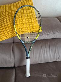 buongiorno con grande dispiacere vendo nuovissima Babolat pure aero 2026 manico 3 piatto 100 300g vendo per un importante infortunio al gomito che al momento mi tiene fermo e penso che al rientro userò un altro tipo di racchetta usata 3 ore di gioco incordata con rpm hurricane