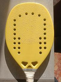 Racchetta beach tennis in carbonio 3k, spessore 22 mm, lunghezza 50 cm, riverniciata di giallo e grippata