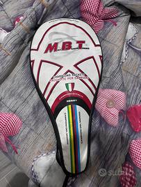 Racchetta da beach tennis MBT. Come nuova, usata pochissimo. Vista l’età c’è da sostituire il nastrino bianco che si sta rompendo.