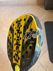 Vendo racchetta da Padel Babolat Counter Viper in ottime condizioni, riporta una crepa su una lato ma nulla di grave, nastro in ottime condizioni, ha il laccio per il polso e la copertura per la parte superiore per evitare graffi, prezzo trattabile nei limiti del possibile