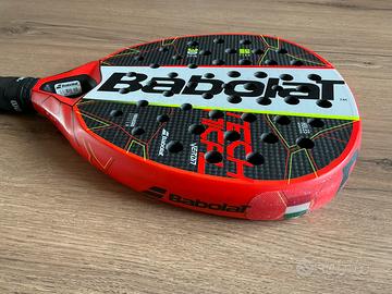 Racchetta da padel Babolat Technical Veron, ideale per equilibrio tra potenza e maneggevolezza. Ottime condizioni strutturali, con grip Hesacore in silicone a nido d’ape per presa e riduzione vibrazioni. Paracolpi in ottimo stato. Segni di usura estetici sul bordo superiore, senza compromettere le prestazioni. Vendo per passaggio a nuova racchetta.