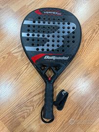 Vendo racchetta bull Padel vertex 04 Hybrid per passaggio a nuovo brand. La pala è in ottime condizioni mostra solo sui bordi i segni di usura dovuti a diverse partite fatte, ma i piatti sono completamente integri. La pala è adatta per giocatori di destra che amano molto il controllo, perché leggerissima. Comprata otto mesi fa a 280