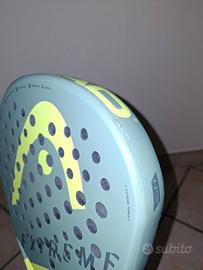 Head Extreme Motion 2024: piatti in carbonio misto a fibre di vetro, peso di 363g con un overgrip e bilanciamento alto a 27cm. Pala in ottime condizioni usata solo qualche mese, l'unico difetto è il graffio sul protettore in testa ma di per sé la pala è perfetta.