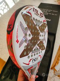 vendo racchetta usata ma tenuta in maniera maniacale. NON presenta rotture , solo qualche salto di vernice scome da foto allegate. ottima per chi si approccia ora al padel(forma rotonda), non stecchi neanche se vuoi.... nella vendita è inclusa confezione originale, 2 laccetti e polsino nox
