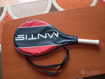Racchetta da tennis in alluminio marca Mantis Premium, lunghezza 66 cm adatta ai bambini di 11-12 anni , + cover con tracolla. Colore nero, rosso, bianco, in ottime condizioni.