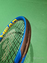 Racchetta da tennis HEAD Cyber Elite con tecnologia Metallix, colori blu e giallo fluorescente.