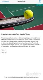 Vendo racchetta da tennis Speed MP 2024 autografata da Jannik Sinner autentica. La racchetta è stata vinta al concorso ISYBANK per le Nitto ATP Finals 2024 a Torino. Insieme alla racchetta rilascerò una dichiarazione scritta e la fotocopia delle mail di vincita e gli screenshot dell'applicazione isybank dove si puo vedere la vincita (come da foto allegata all'annuncio).