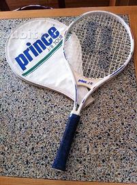 Racchetta da tennis PRINCE J/R Originale, colore bianco e impugnatura blu, completa di custodia con logo stampato