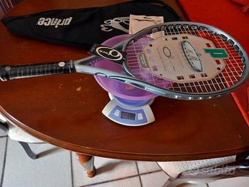 bellissima racchetta da tennis pari al nuovo mai usata ancora nel suo celofan originale con custodia e fili di ricambio (la racchetta e stata pagata come indicato sul contrassegno adesivo della racchetta basta ingrandire la foto sul inpugnagura