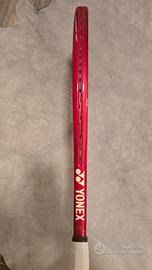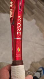 Vendo Yonex Vcore 100 Versione nuova APRILE 2026 Manico 3 Nuova, provata solo 20 minuti Incordata, Yonex Polytour Fire da 1.25, tirate 21/19 La racchetta NON presenta graffi o scalfiture Disponibile per altre info