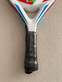 Vendo racchetta di padel marca zeus thunder beginners, per principianti, con il suo borsone. Nuove mai utilizzata, ancora imballata. MATERIALE: Comp. esterna: 1 strato Fibra di vetro Comp. interna: 2 livelli Fibra vetro + 2 livelli Carbonio Telaio: Carbonio Nucleo: Eva 17 MISURE: 46,5 x 25 x 3,8 cm pesa 355 g e presenta un piatto a forma di goccia che facilita il gioco e migliora il controllo.