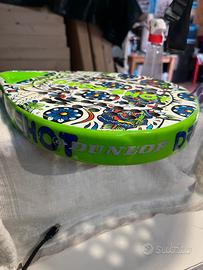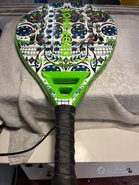Racchetta da padel in perfette condizioni completa di custodia Marca Drop Shot modello Killer Pro dal design accattivante, si vede un teschio. Poco usata con qualche normale segno d’usura. Racchetta d’attacco, esplosiva.
