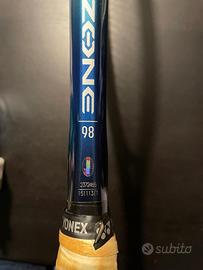 Ezone 98 del 2022 condizioni come da foto. Racchetta in ottimo stato. Specifiche: Piatto corde:98 Peso:305 Profilo:23.5-24.5-19.5 Bilanciamento:315 Lunghezza:27 Schema corde :16x19 Manico L3