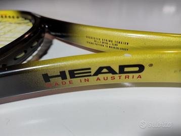 Racchetta da tennis storica, l'ultima Head made in Austria, con custodia originale, in ottime condizioni. Edizione iconica gialla e nera "Agassi" anche detta BumbleBee. Lievi segni di utilizzo nella protezione superiore esterna (foto 3) che comunque si può sositutire. Manico 4 3/8 L3. Venduta senza grip. Disponibile alla spedizione o consegna di persona su Viterbo e alcuni quartieri di Roma Nord (Nuovo Salario - Fidene).