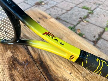 racchetta andrea agassi head radical tour 630 del 1993 gialla e nera con manico L3 43/8, antiscivolo overgrip originale, corde head pro reel. usata ma in ottime condizioni come da foto. compreso fodero originale