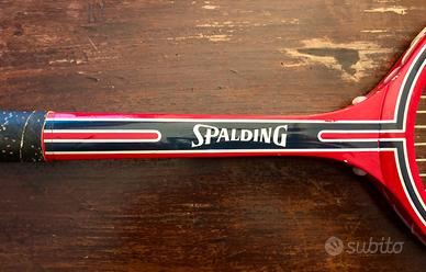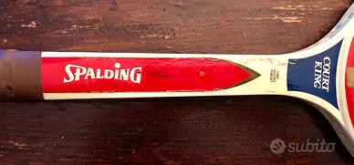 Racchetta da tennis Spalding Court King, un classico intramontabile per gli amanti del tennis d'epoca. Questo modello è caratterizzato dalla tecnologia Fibre Welded Throat, un rinforzo strutturale al cuore della racchetta tipico della prestigiosa manifattura Spalding, che garantiva maggiore stabilità ai telai in legno dell'epoca.