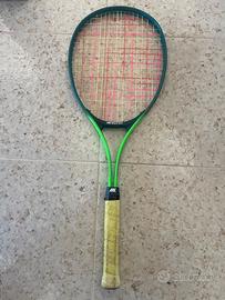 Anni 80, il telaio in alluminio verde e blu offre una buona combinazione tra leggerezza e resistenza. Le corde sono colorate e ancora tese, complete di custodia Victor originale. Presenta segni di utilizzo sul grip ma la struttura è integra. Ideale per chi vuole aggiungere un pezzo vintage alla collezione o cercare un attrezzo per il gioco amatoriale. La lunghezza è circa 68 cm con piatto corde ampio.