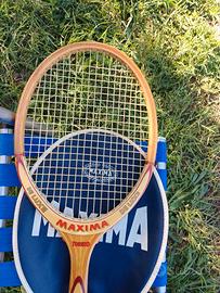 Racchetta da tennis marca Maxima De Luxe in legno vintage completa di accordatura e custodia buono stato