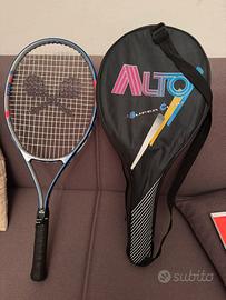 racchetta tennis Miller con custodia nera usata poco la gomma del manico un po usurata x il tempo ma sistemata con l’overgrip
