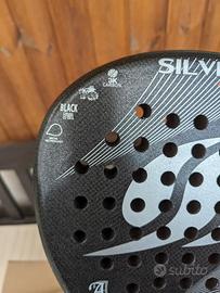 RACCHETTA CON PADELLA IN CARBONIO PIENO: La racchetta SILVER PRO 3K Side Spin è progettata per i giocatori che cercano un alto livello di gioco. Abbiamo innovato con la tecnologia metallica, che è costituita da lastre di metallo attorno al telaio; questa tecnologia ci permette di dare maggiore rigidità al telaio. La racchetta più potente d'argento.