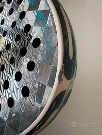 Racchetta padel usata poco, in buone condizioni, con piccola ammaccatura sulla testa.