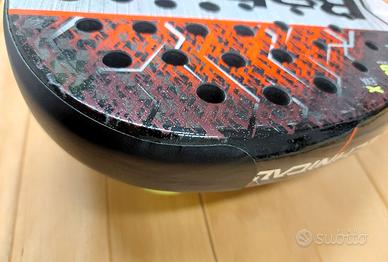 La racchetta è dotata di una protezione del telaio già installata. Questo accessorio rappresenta un valore aggiunto e non verrà rimosso. Sotto la protezione possono essere presenti normali segni d’uso non visibili, poiché la sua funzione è proprio quella di proteggere il telaio. Acquista la racchetta solo se realmente interessato e tenendo conto di questo aspetto.