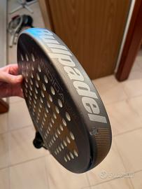 Vendo racchetta bullpadel indiga power per inutilizzo. La racchetta è usata e in buone condizioni, unica scheggiatura la si vede in foto.