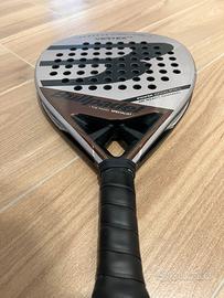 Racchetta da Padel professionale usata 3/4 mesi, vendo per ormai inutilizzo. Pagata 240 attualmente nuova costa 130 circa. Condizioni molto buone come da foto, presenta solo piccola lacerazione sul bordo destro che comunque non ne compromette l’utilizzo.