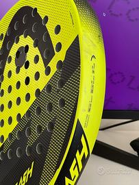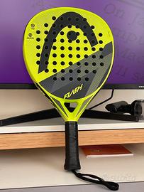 Racchetta da padel Head Flash giallo/nero in buone condizioni generali, con alcuni segni di gioco sulla protezione del telaio e nella zona dei fori centrali ma struttura integra e utilizzabile.