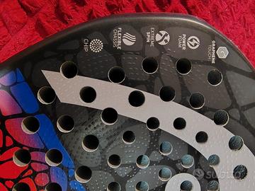 Head Graphene Delta Pro Touch. Massima potenza ed esplosività si incontrano nella racchetta da padel Head Delta Pro. Pensata per i giocatori di livello avanzato, è dotata di tecnologia Auxetic che assicura una sensibilità eccezionale. Dettagli: Forma: diamante Spessore: 38 mm Peso: 375 gr Bilanciamento: 272 mm Telaio: carbonio e grafene Superficie: fibra di carbonio e fibra di vetro Nucleo: EVA Finitura: ruvida Cinturino da polso regolabile Livello giocatore: esperto La racchetta è dotata di fodero