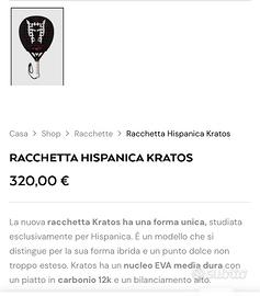 Vendo racchetta Hispanica Kratos Pro in ottime condizioni, usata per una ventina di partite.