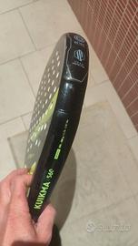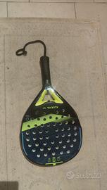 perfetta per principianti/medio livello. vendo per passaggio a racchetta medio/alto livello. usata per circa 10/12 partite, qualche segno di usura sulla cornice, piatto in ottimo stato.