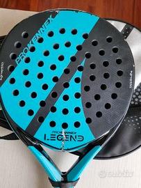 Racchetta padel Pro Kennex Legend Pro, con crepe come da foto sui piatti che non ne pregiudicano l’uso, la miglior racchetta per evitare problemi di epicondilite, grazie al brevetto della pro kennex previene l’insorgere della problematica. Il Kinetic System® unitamente al Kinetic Damping Chamber® garantisce un comfort assoluto riducendo drasticamente le vibrazioni e la distorsione torsionale del telaio e donano sensibilità e controllo all’impatto Cedo insieme al suo fodero termico.