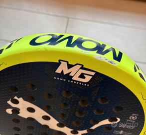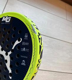 Racchetta da padel con alcuni segni di normale usura da gioco (perdita vernice).