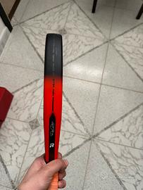 Racchetta perfetta, alla seconda partita mi sono rotto il crociato…e non lo piu usata, comprata nuova e tenuta maniacalmente per chi gia sa muoversi in campo ottima. Non consigliata ad un principiante. Il piatto ruvido con molto grip.